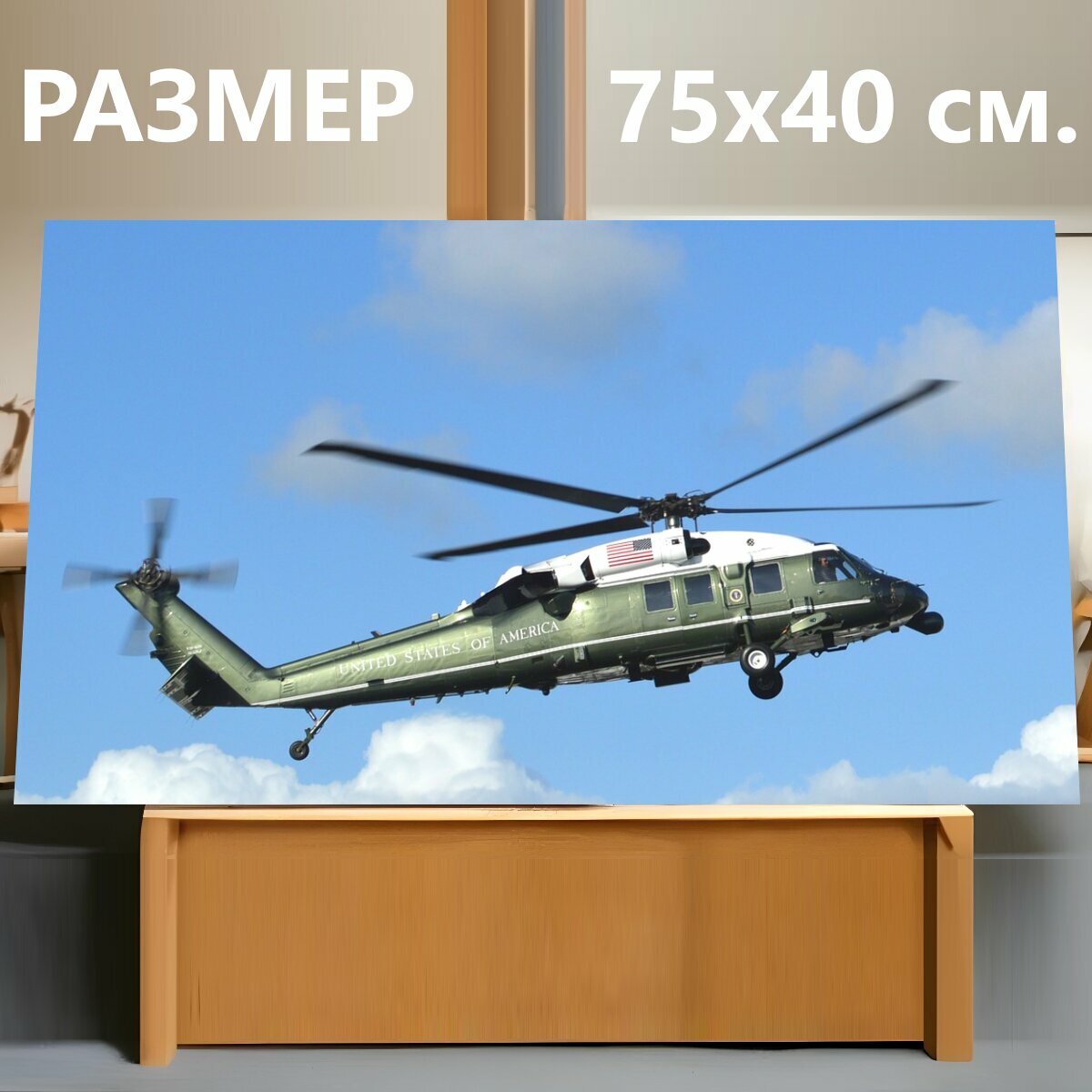Картина на холсте "Обама, вертолет, президент" на подрамнике 75х40 см. для интерьера информация: