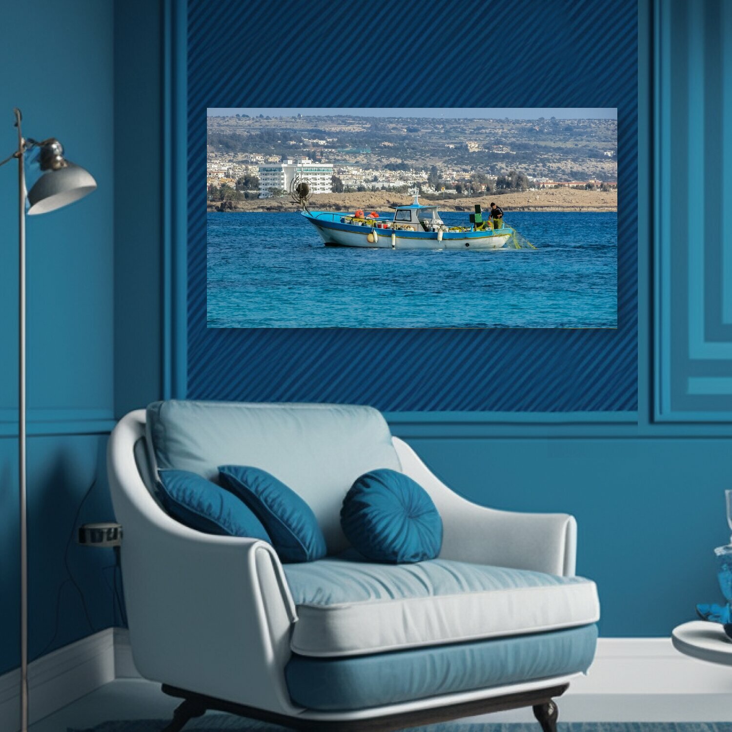 10 цен на Картина на холсте "Кипр, айя напа, ловит рыбу" на подрамнике 75х40 см. для интерьера