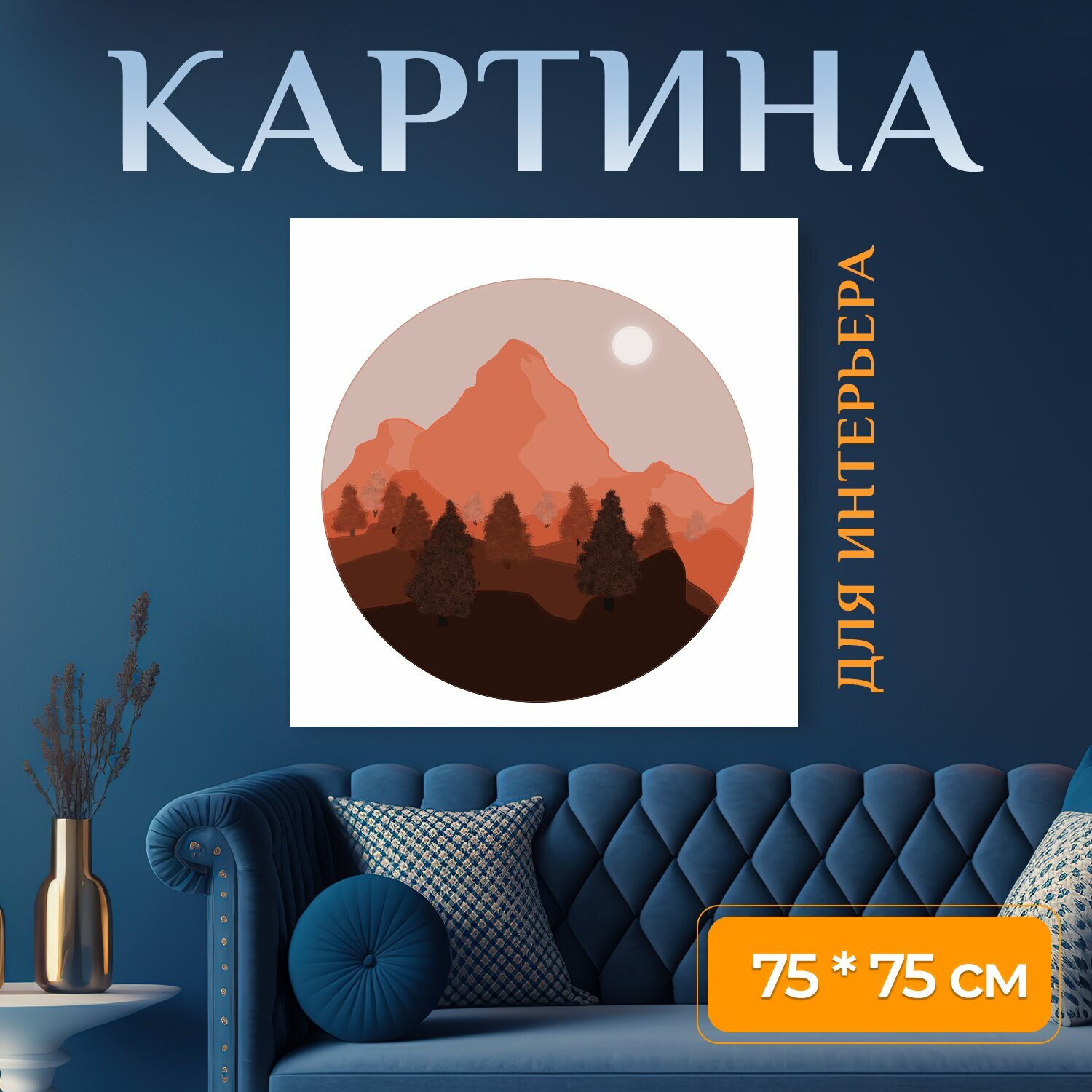 10 цен на Картина на холсте "Апельсин, посмотреть, горы" на подрамнике 75х75 см. для интерьера