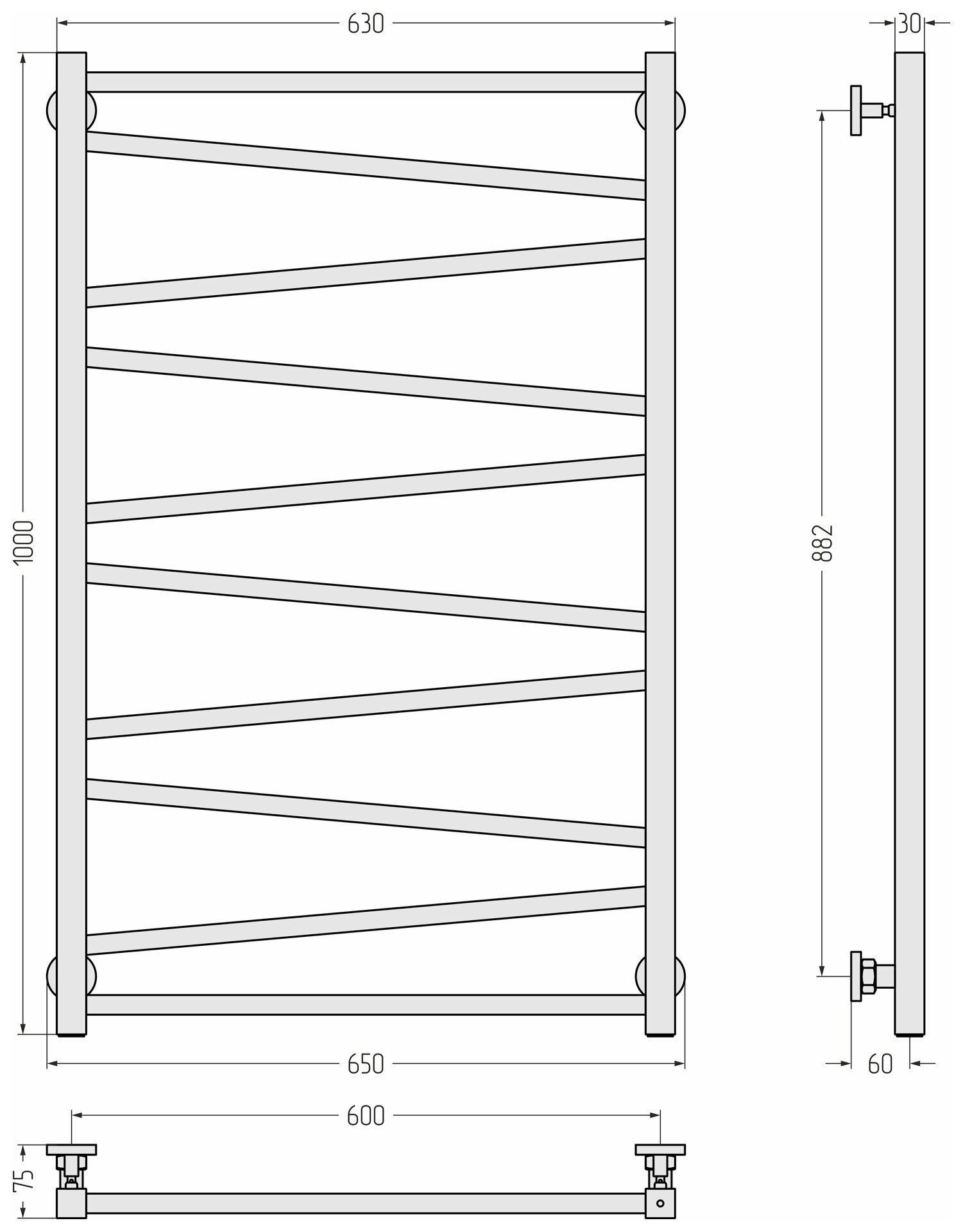 Водяной полотенцесушитель Сунержа Сирокко 1000x600 арт. 00-0253-1060 информация: