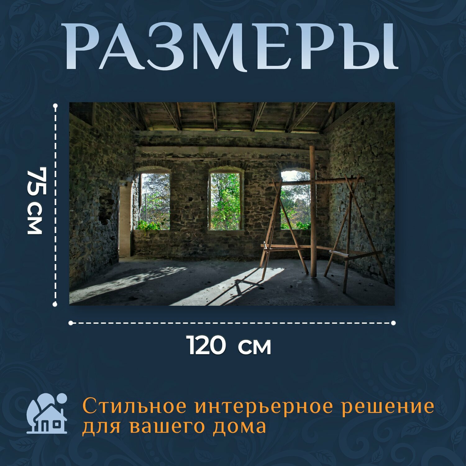 Картина на холсте "Потерянные места, разорение, заброшенный" на подрамнике 120х75 см. для интерьера информация: