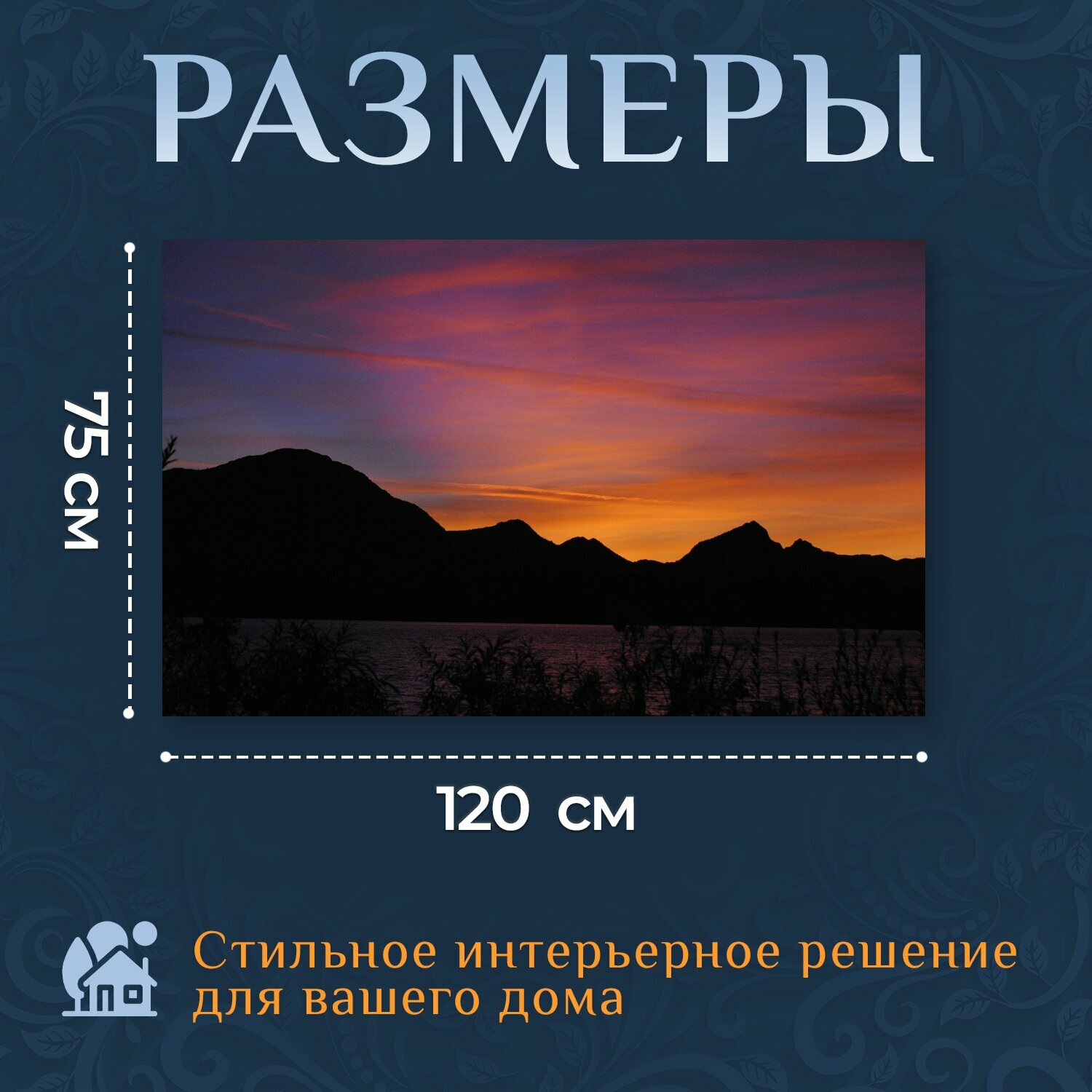 Картина на холсте "Горы, пейзаж, вечерняя атмосфера" на подрамнике 120х75 см. для интерьера информация: