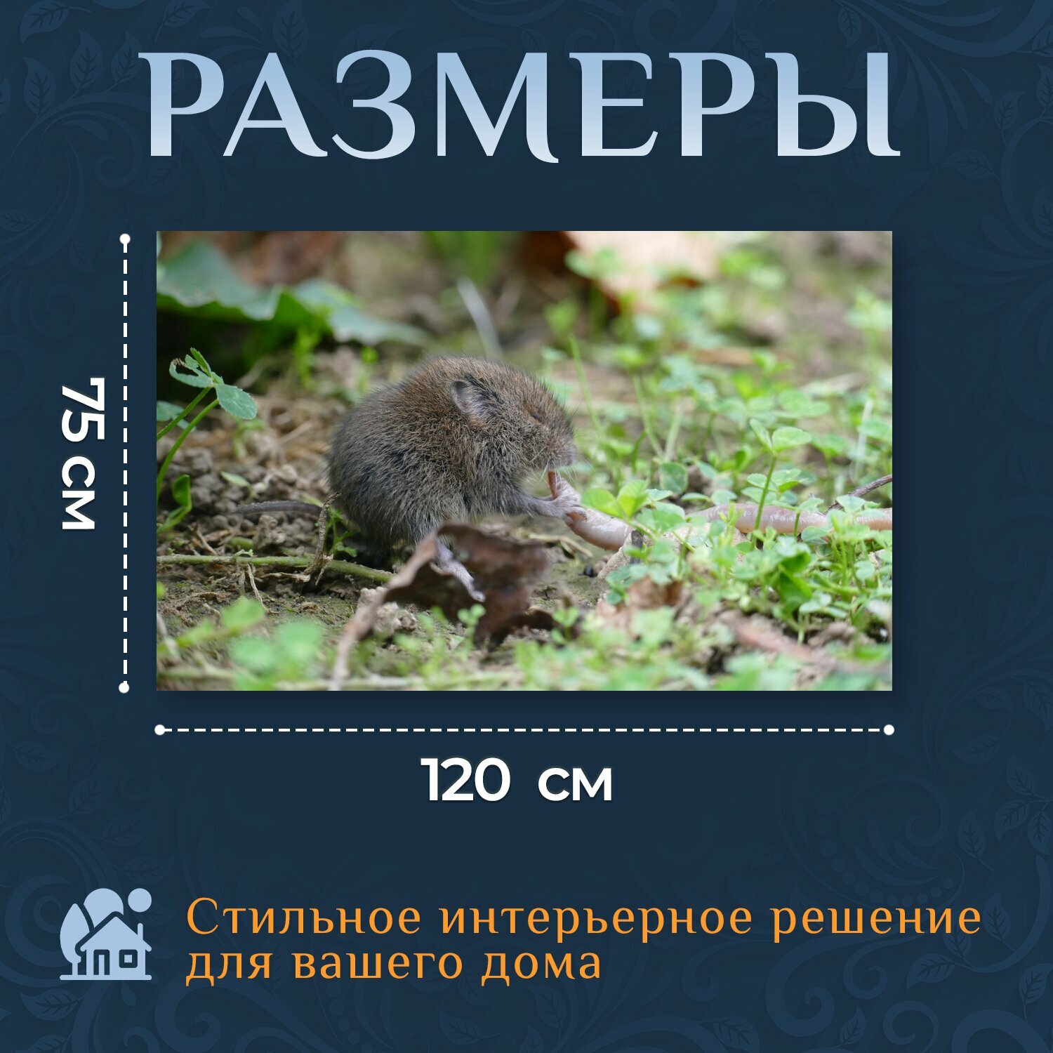Картина на холсте "Мышь, полевка, грызун" на подрамнике 120х75 см. для интерьера информация: