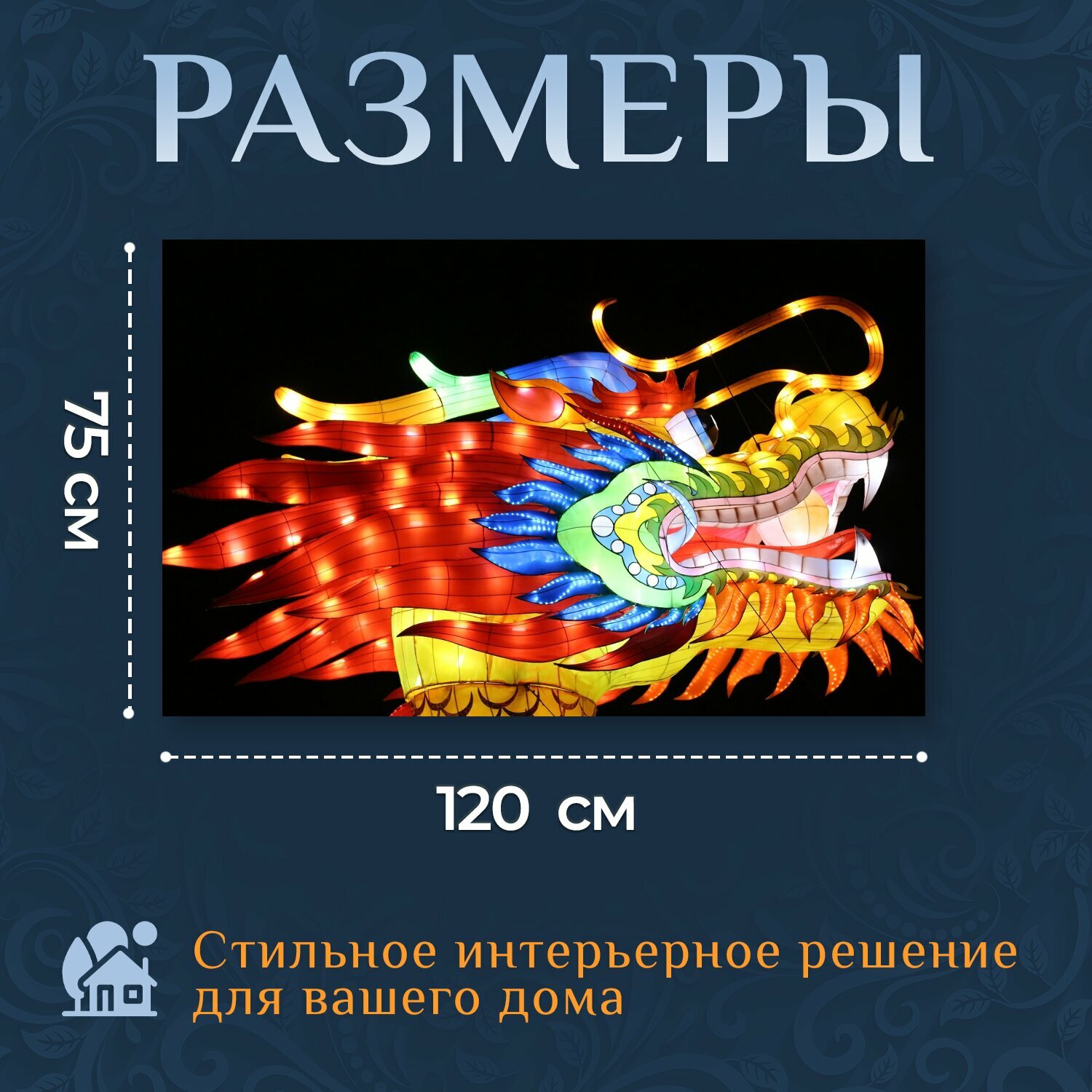 Картина на холсте "Дракон, свет, фантазия" на подрамнике 120х75 см. для интерьера информация: