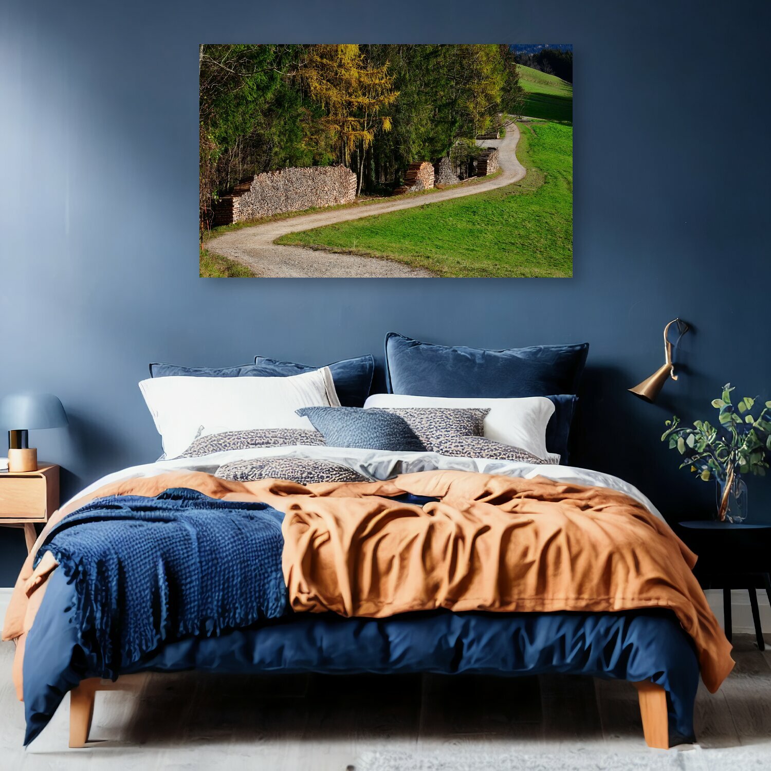 10 цен на Картина на холсте "Лесная тропа, дорожка, лес" на подрамнике 120х75 см. для интерьера
