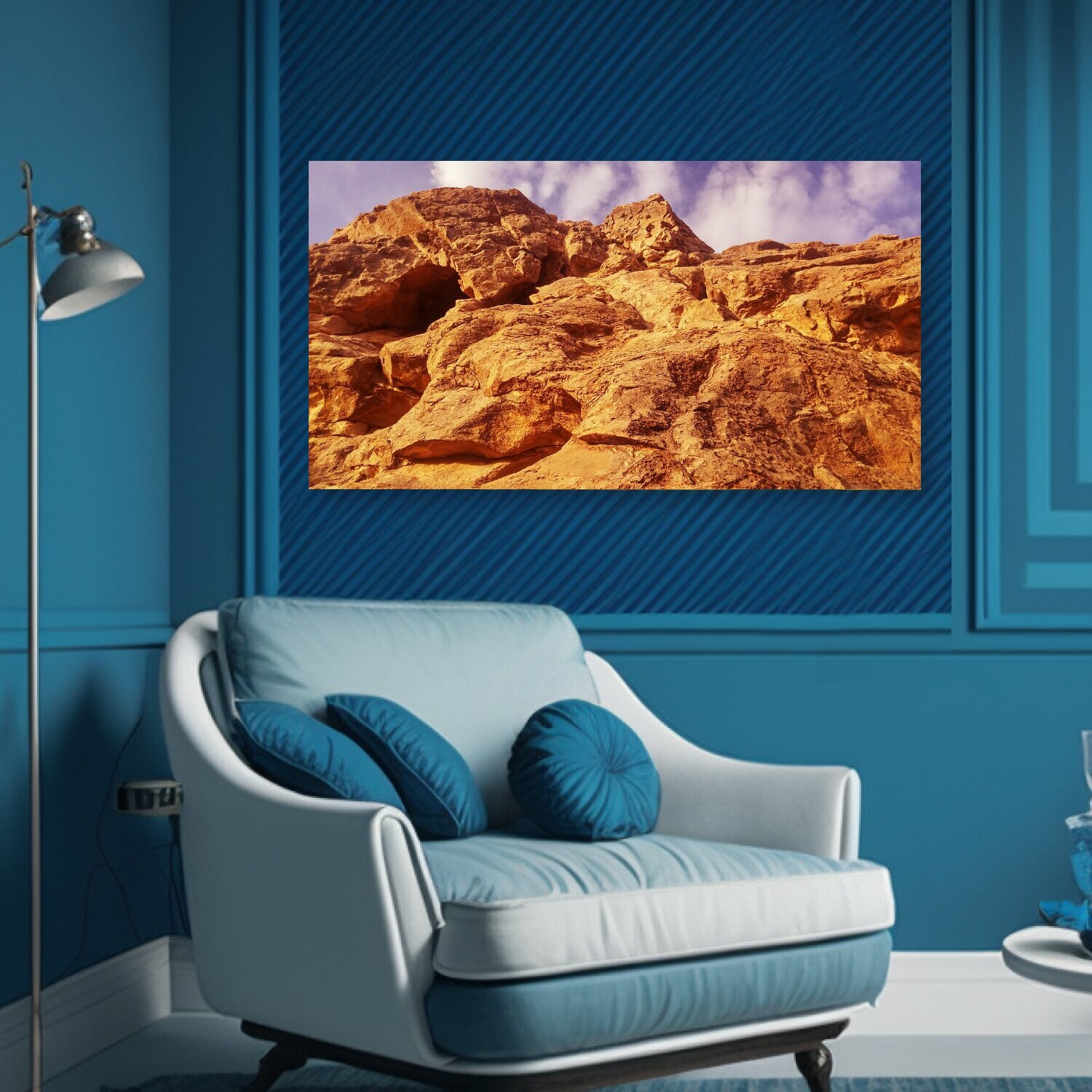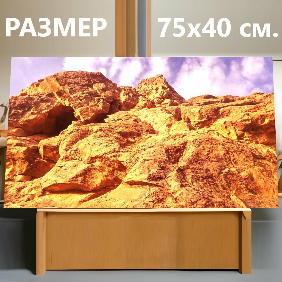 10 цен на Картина на холсте "Гора, пустыня, желтый" на подрамнике 75х40 см. для интерьера