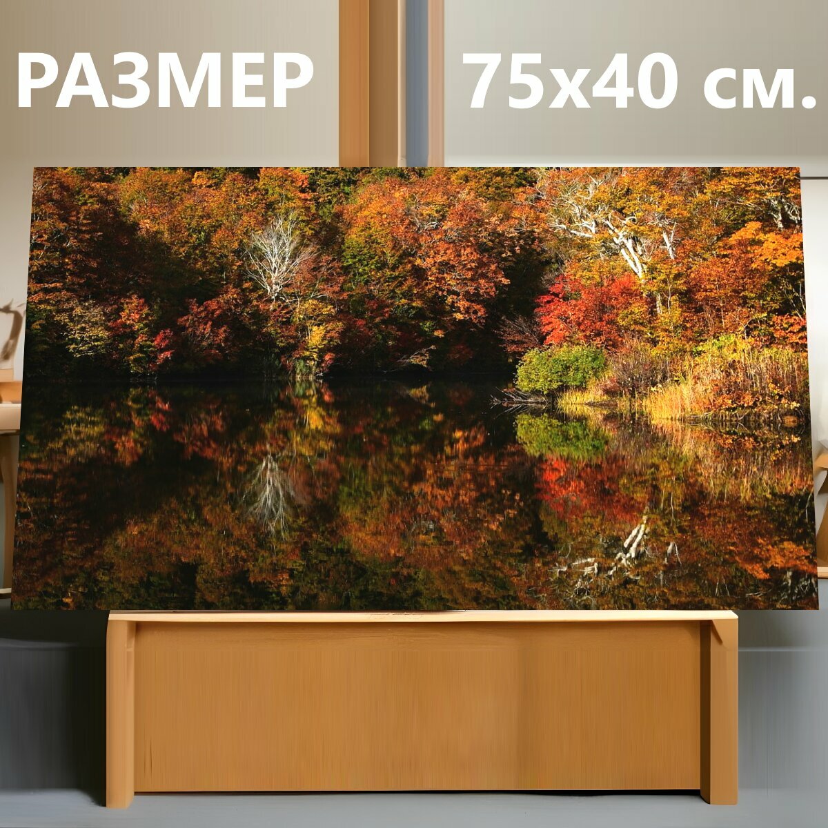 Картина на холсте "Озеро, деревья, осень" на подрамнике 75х40 см. для интерьера информация: