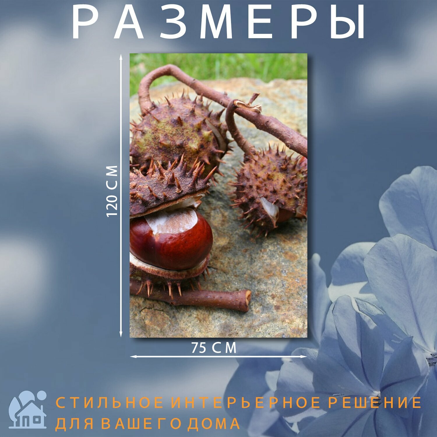 Картина на холсте "Каштаны, каштаны ветка, каштан" на подрамнике 75х120 см. для интерьера информация: