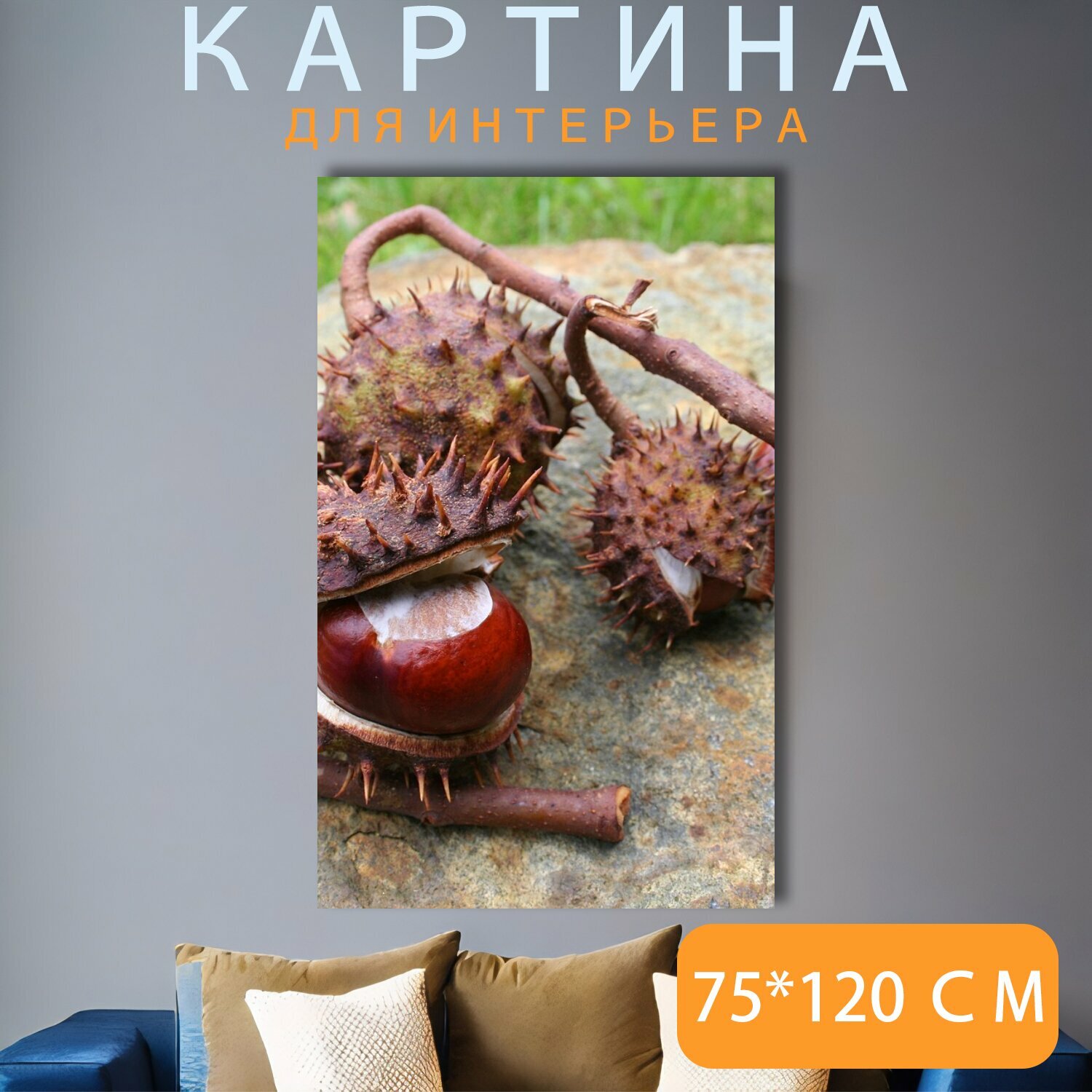 10 цен на Картина на холсте "Каштаны, каштаны ветка, каштан" на подрамнике 75х120 см. для интерьера