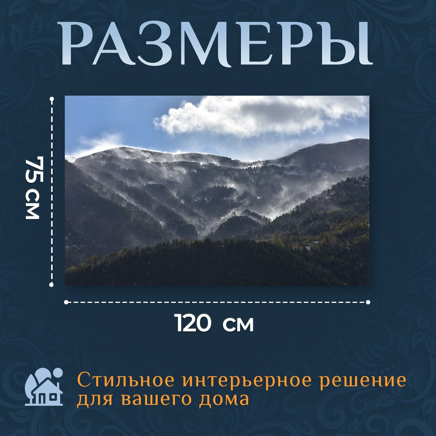 Картина на холсте "Горы, пейзаж, туман" на подрамнике 120х75 см. для интерьера информация:
