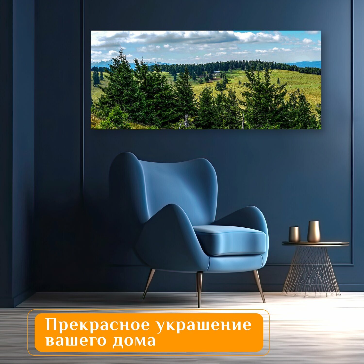 Картина на холсте "Гора, зеленый, трава" на подрамнике 175х75 см. для интерьера информация: