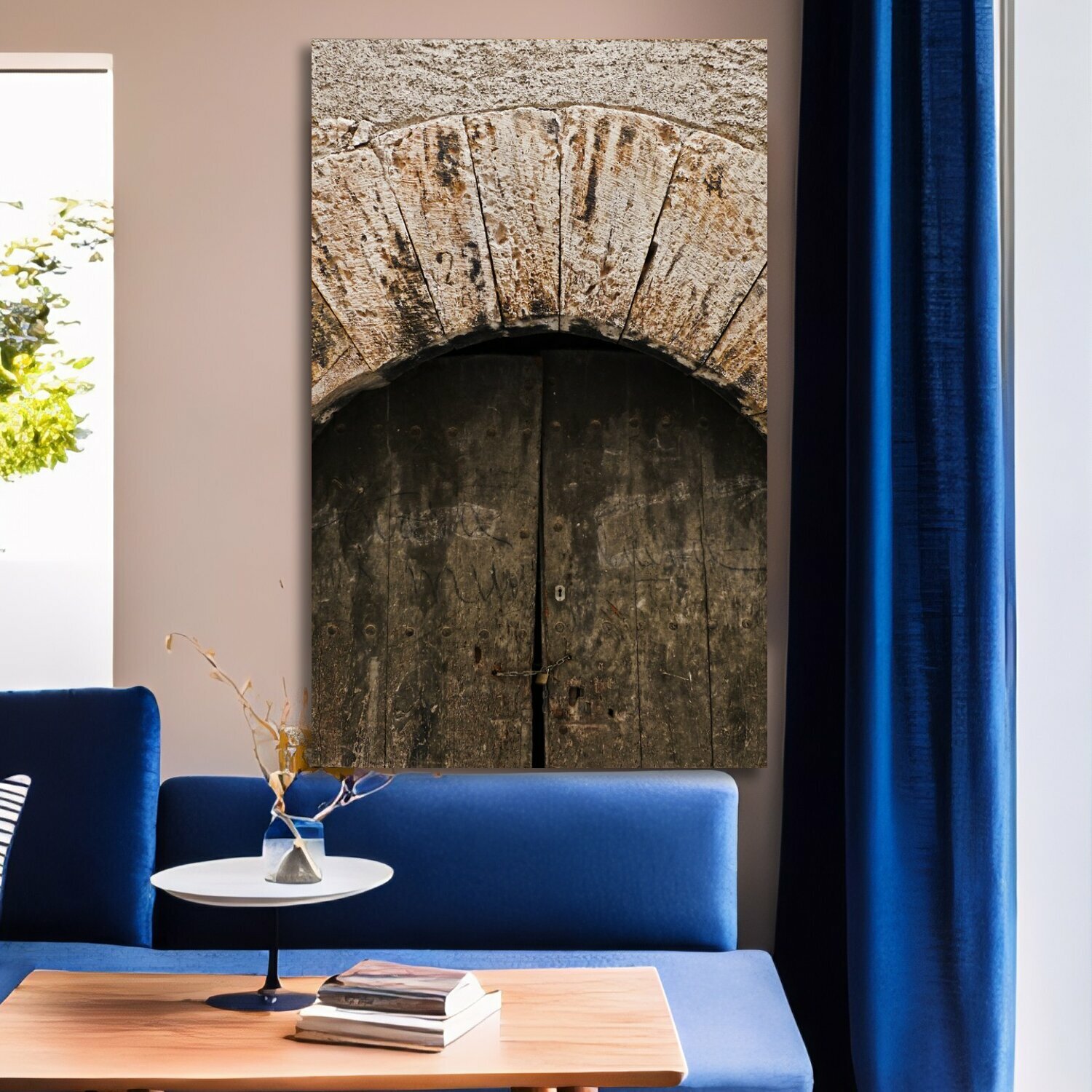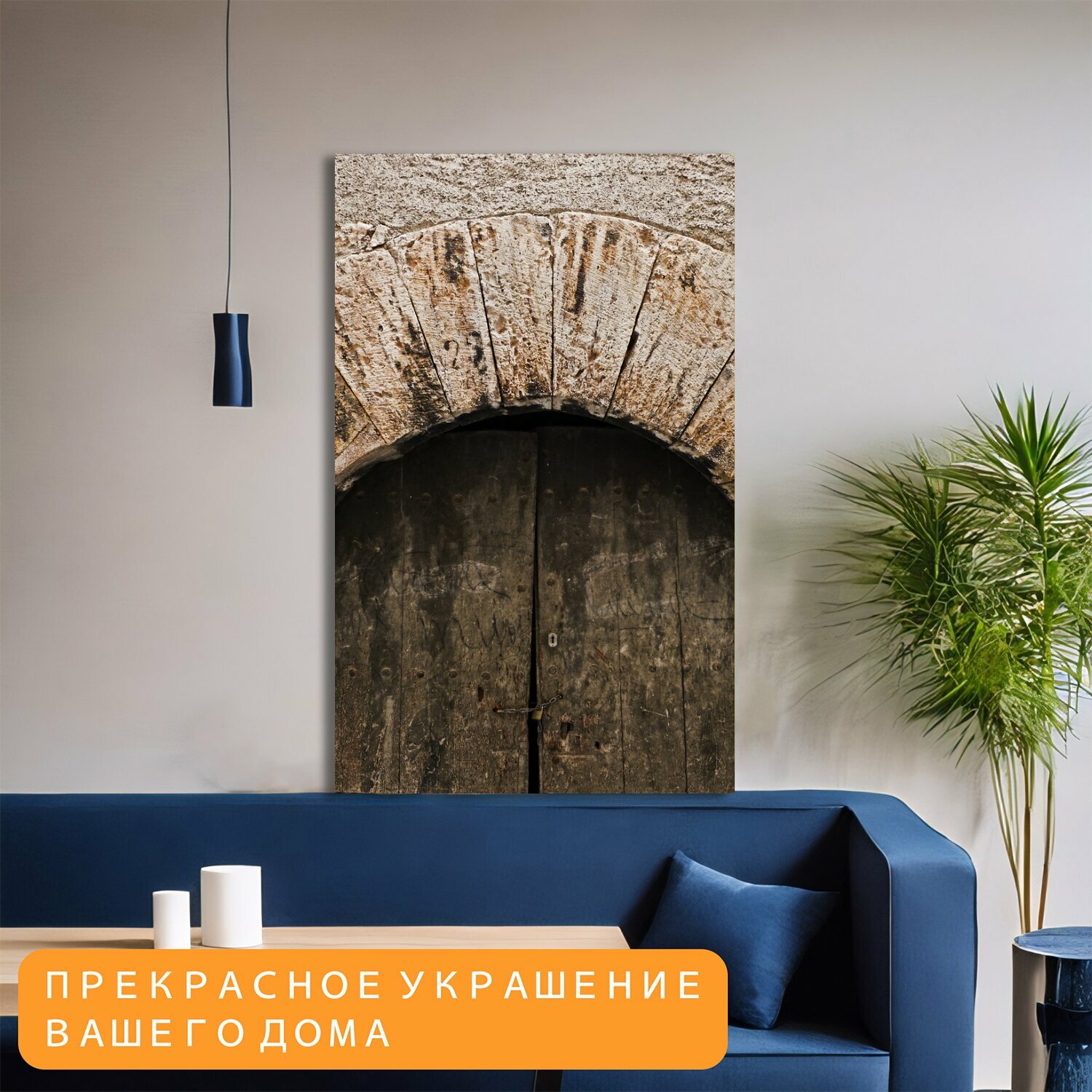 10 цен на Картина на холсте "Дверь, каменная арка, полукруглая арка" на подрамнике 75х120 см. для интерьера