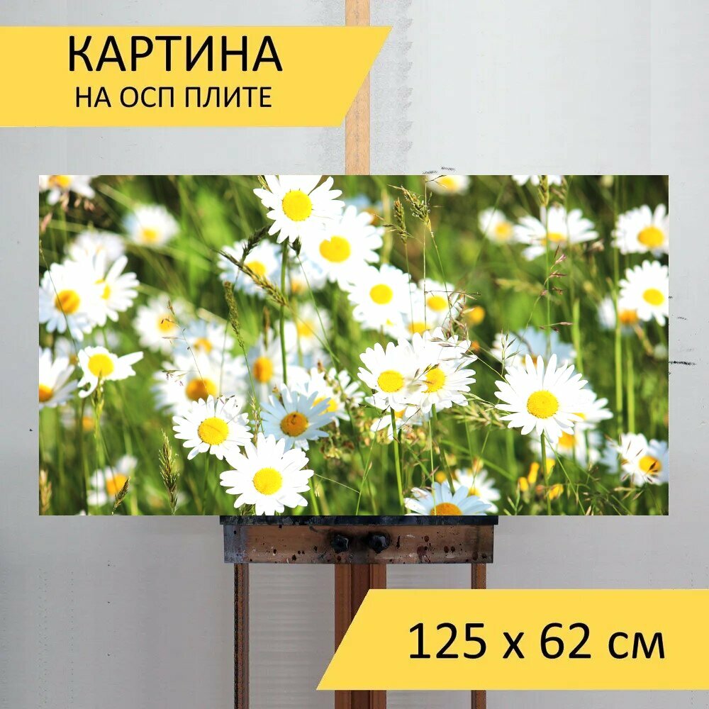Картина на ОСП "Ромашки, луг, белый" 125x62 см. для интерьера на стену информация: