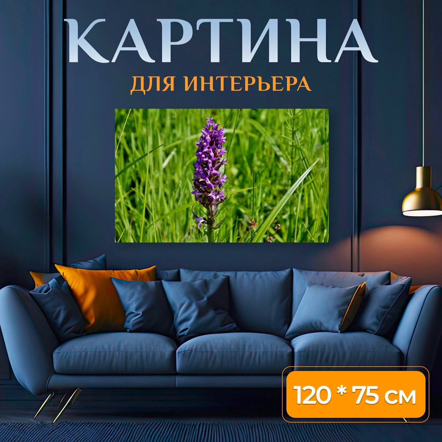 Картина на холсте "Орхидея, луг, цветок" на подрамнике 120х75 см. для интерьера информация:
