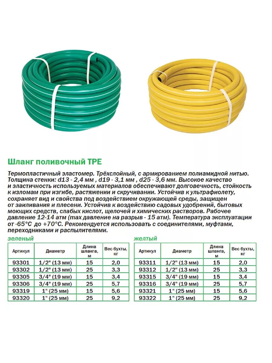 Фарина 93302 Шланг поливочный TPE(термоэластопласт) арм.3-х слойн. зеленый d1/2"(12мм) 25м (72)