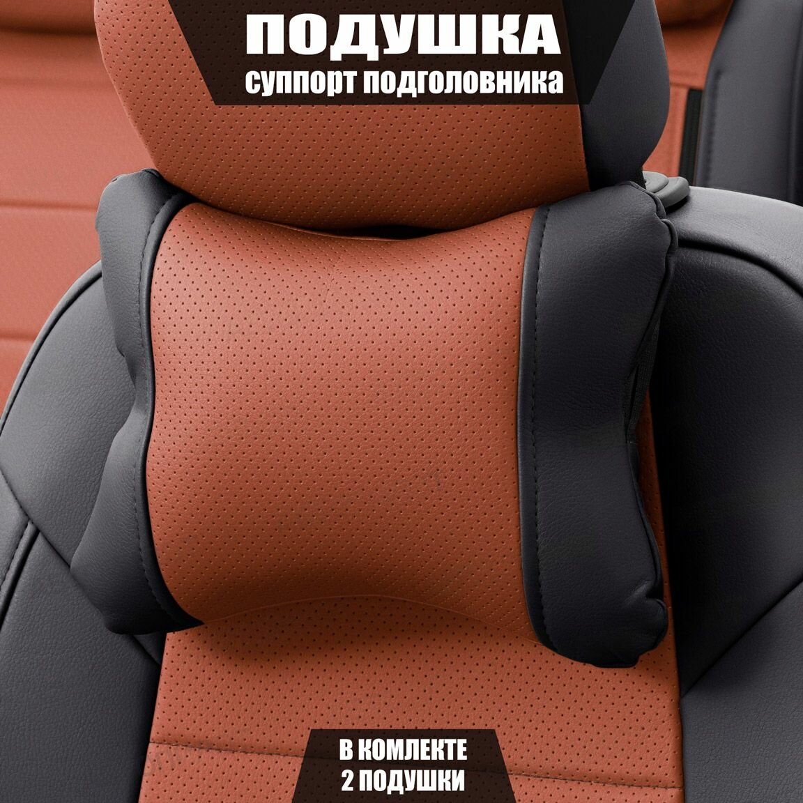 Подушки под шею (суппорт подголовника) для Митсубиси Паджеро (2014 - 2024) внедорожник 5 дверей / Mitsubishi Pajero, Экокожа, 2 подушки, Черный и коричневый информация: