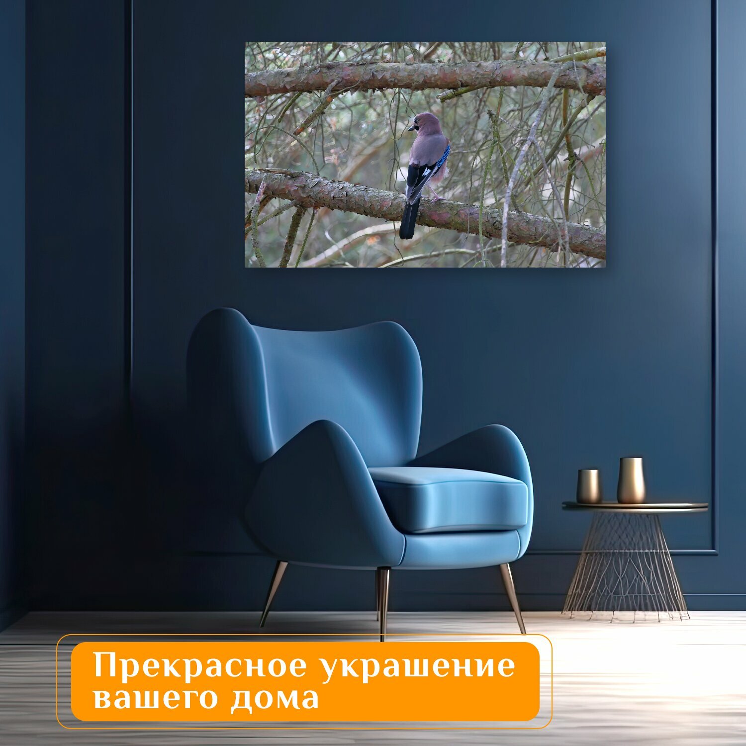 Отзывы на Картина на холсте "Обыкновенная сойка, птица, ветви" на подрамнике 120х75 см. для интерьера