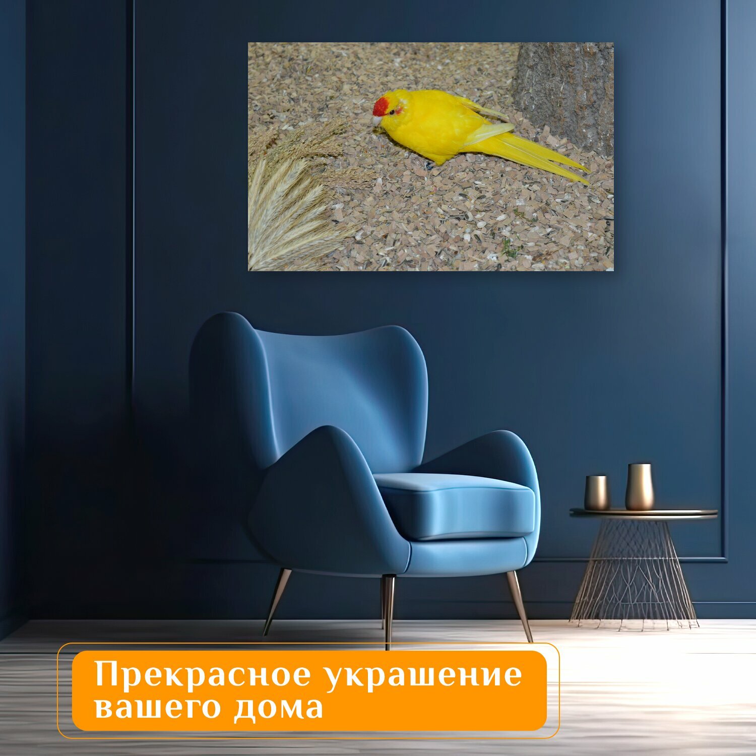 Отзывы на Картина на холсте "Попугай, бегущий попугай, желтый" на подрамнике 120х75 см. для интерьера