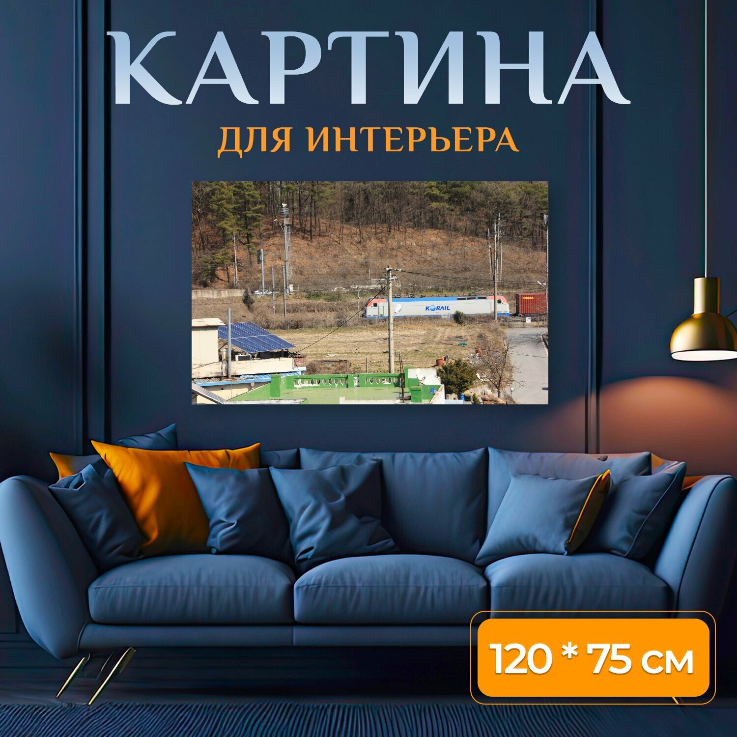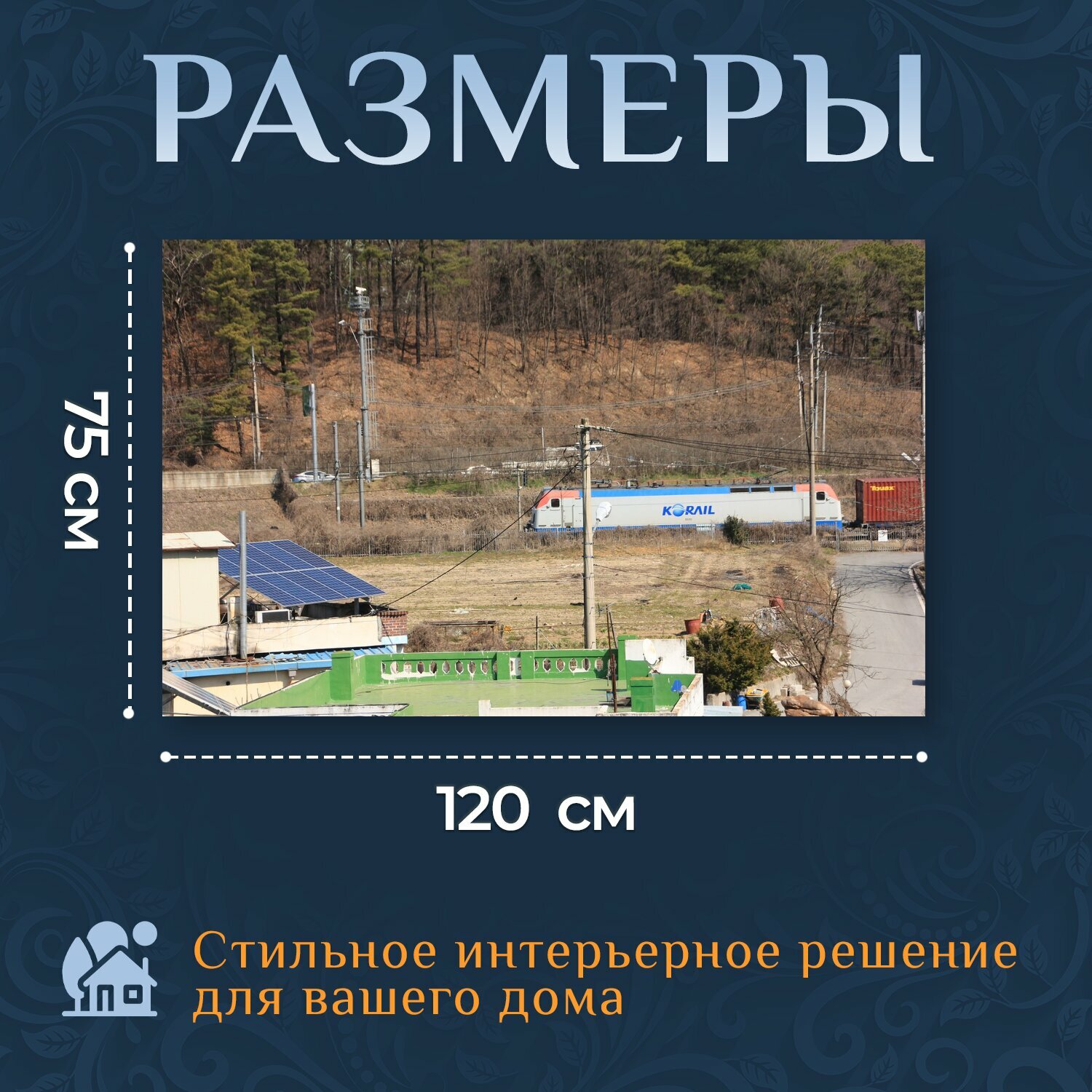 10 цен на Картина на холсте "Корея, железная дорога, движение" на подрамнике 120х75 см. для интерьера