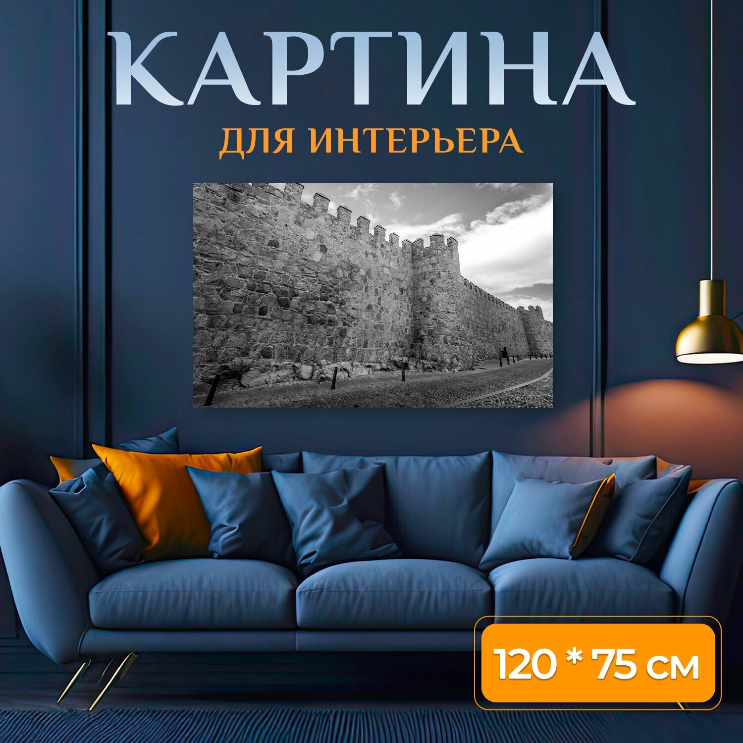 10 цен на Картина на холсте "Стена, камень, замок" на подрамнике 120х75 см. для интерьера
