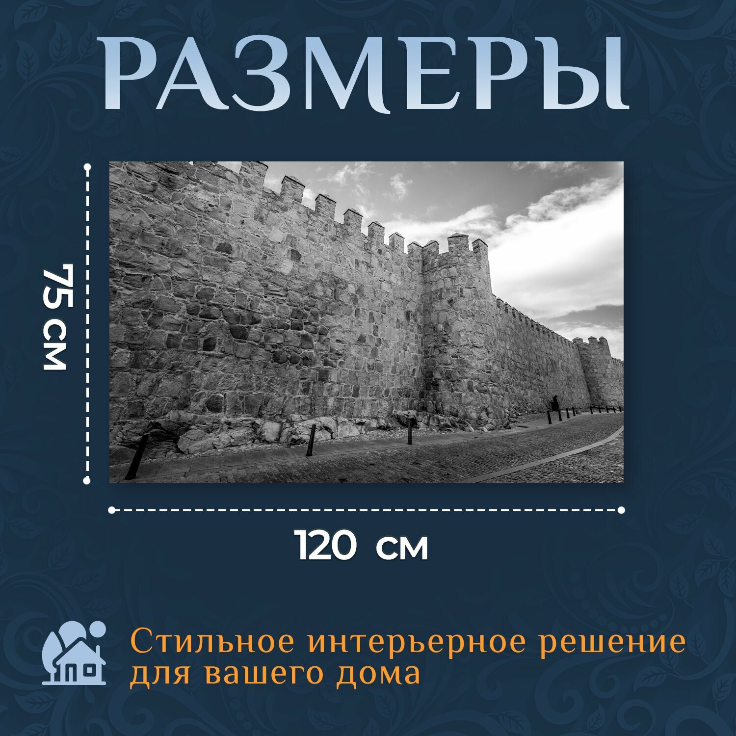 Картина на холсте "Стена, камень, замок" на подрамнике 120х75 см. для интерьера информация: