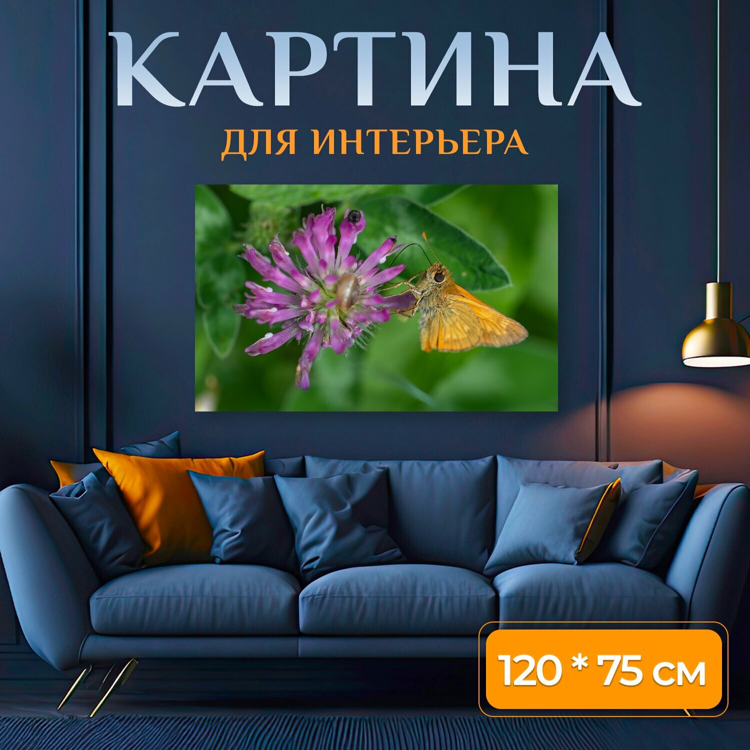 Картина на холсте "Бабочка, нектар, ствол" на подрамнике 120х75 см. для интерьера информация:
