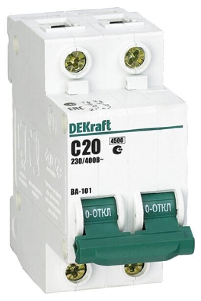 Выключатель автоматический двухполюсный 20А С ВА-101 4.5кА DEKraft информация: