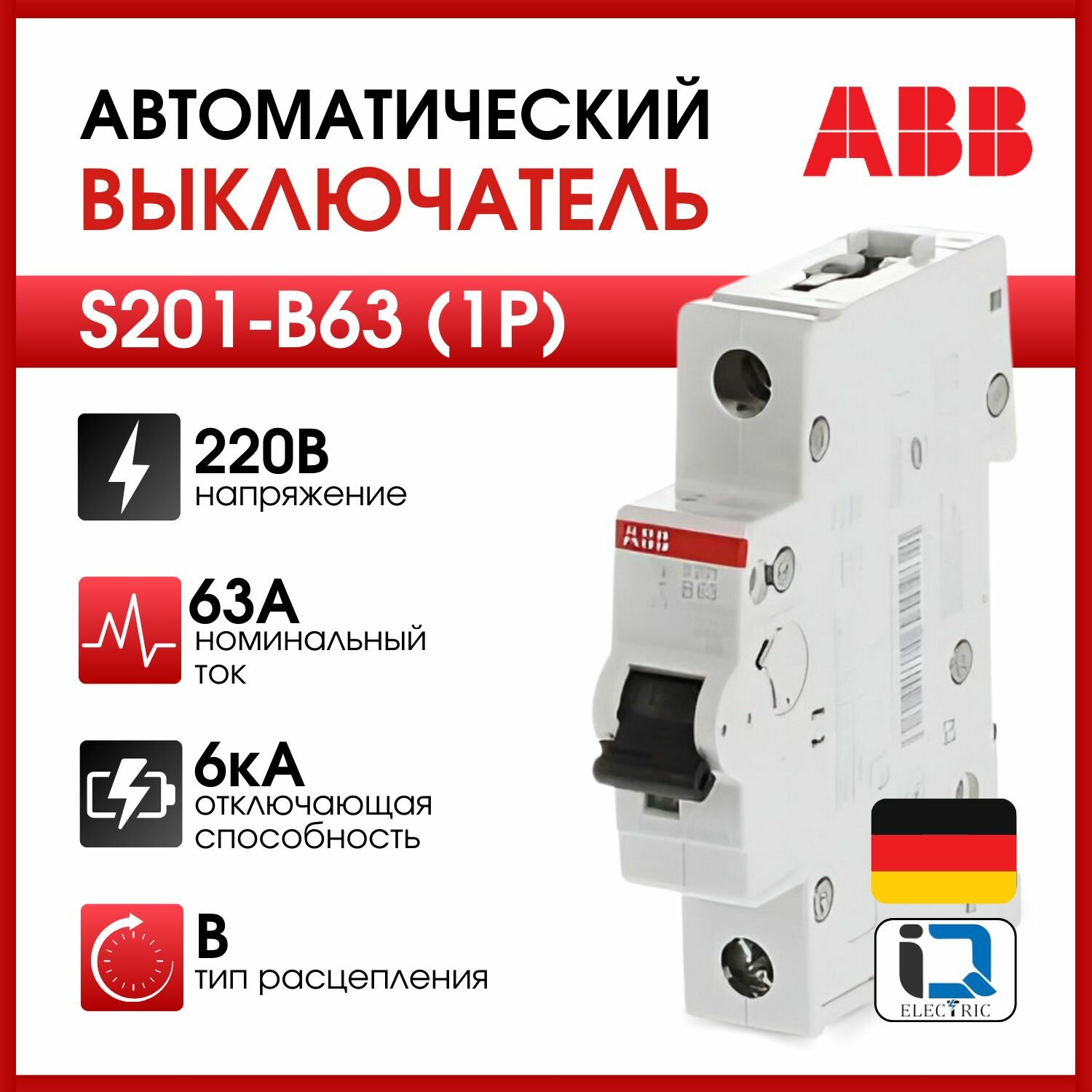 Автоматический выключатель ABB S201 1P 63A тип B 6kA 2CDS251001R0635 информация: