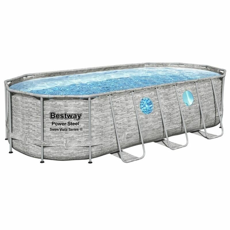 Бассейн Bestway Power Steel Swim Vista 56714, 427х250х100 см. Серый камень.