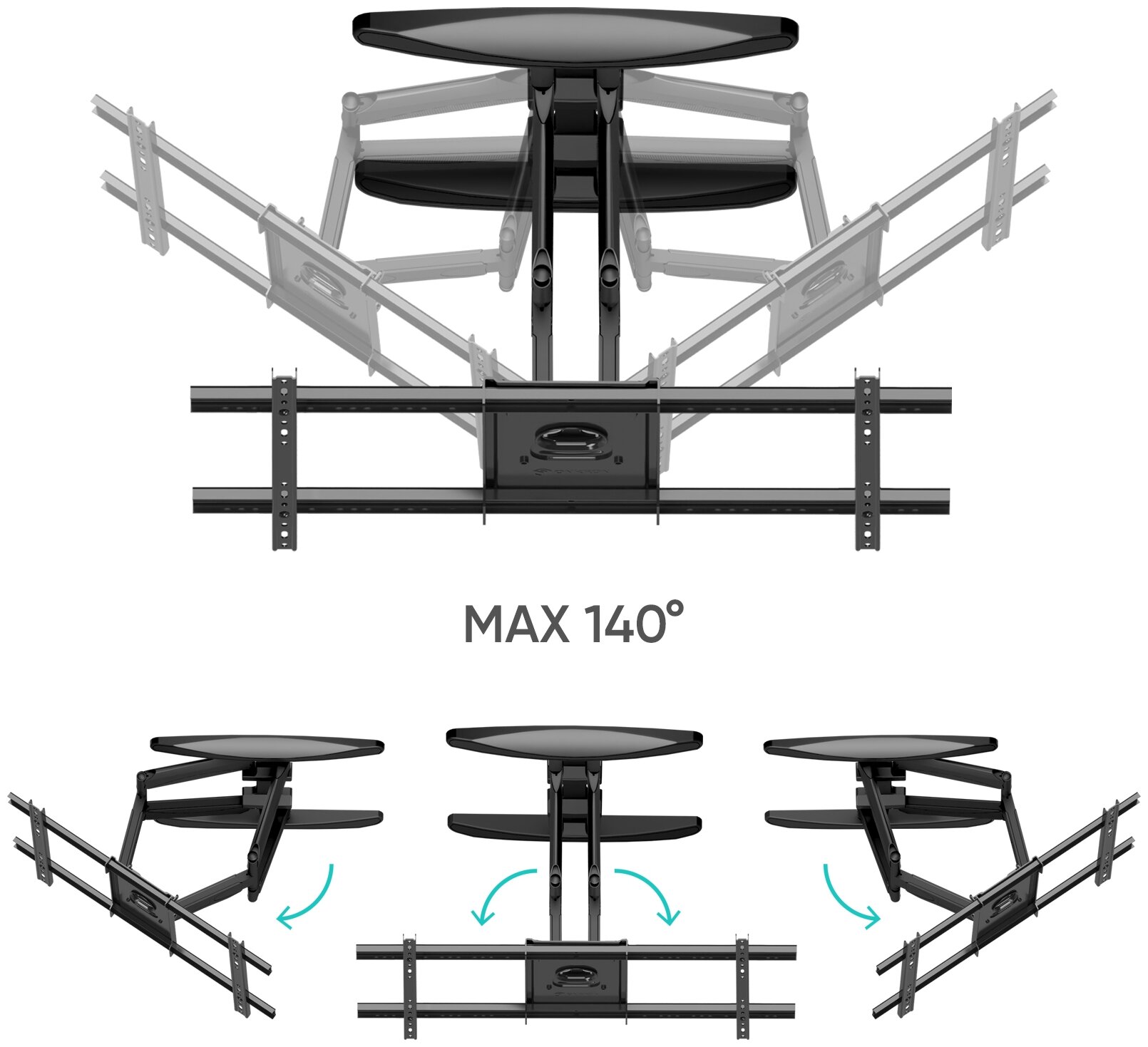 Отзывы на Кронштейн для телевизора Onkron 40-75" макс 400*600 наклон -5°/+8°, поворот ±140° Макс нагрузка 45,5кг, от стены 54-500мм, черный