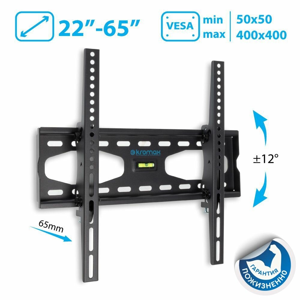Кронштейн для телевизора настенный Kromax STAR-44 / до 65 дюймов / до 50 кг / vesa 400x400 / наклонное крепление для тв / держатель для телевизора