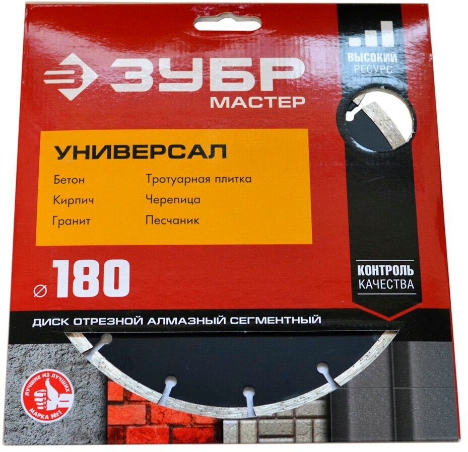 Универсал 180 мм, диск алмазный отрезной сегментный по бетону, кирпичу, камню, ЗУБР(36610-180_z01)