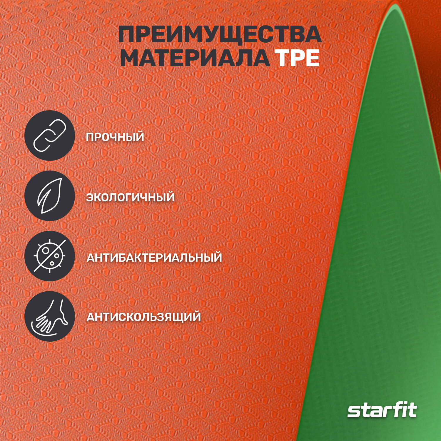 Отзывы на 67932-96652 Коврик для йоги и фитнеса FM-201, TPE, 183x61x0,4 см, оранжевый/зеленый, Starfit, ЦБ-00002537