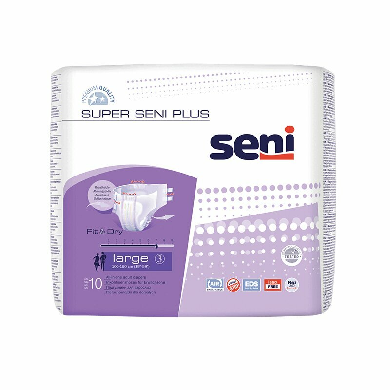 Seni Подгузники для взрослых Super Plus, 100-150 см., L (10 шт.) информация: