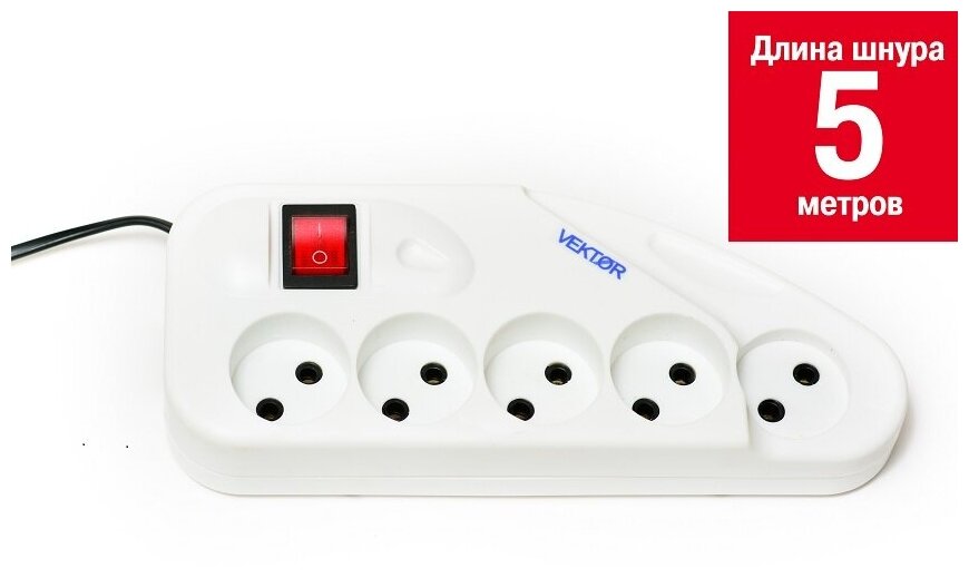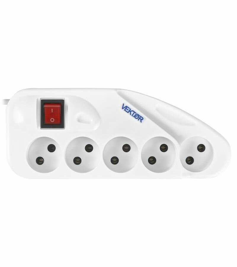 Сетевой фильтр VEKTOR Lite, 5 розеток, 5 м, б/з, 10А белый