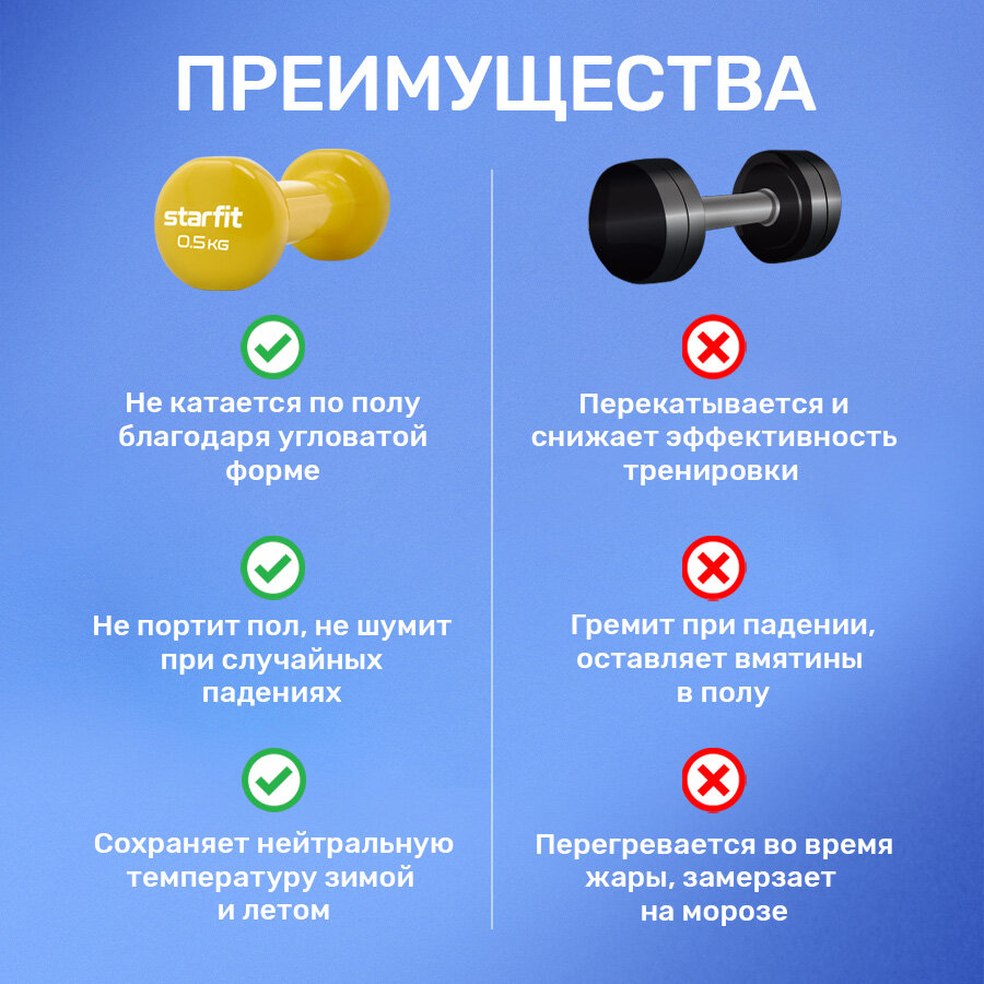 Гантель виниловая Starfit Db-101, 2,5 кг, синий .