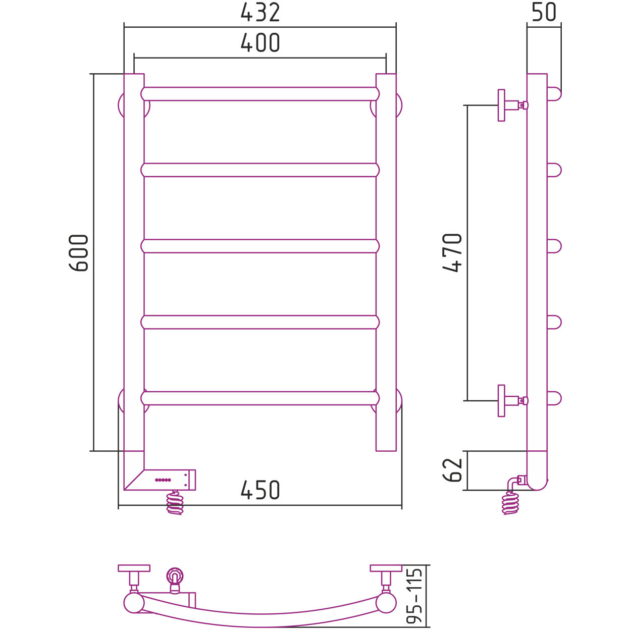 Полотенцесушитель электрический Сунержа 00-5200-6040 Галант 2.0 Полотенцесушитель электрический РЭБ, 600х400 мм/ МЭМ левый, без покрытия