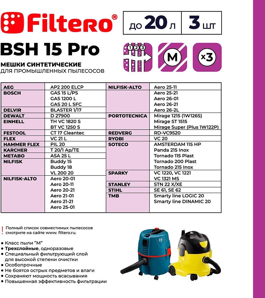 Filtero BSH 15 (3) Pro, мешки для промышленных пылесосов . информация: