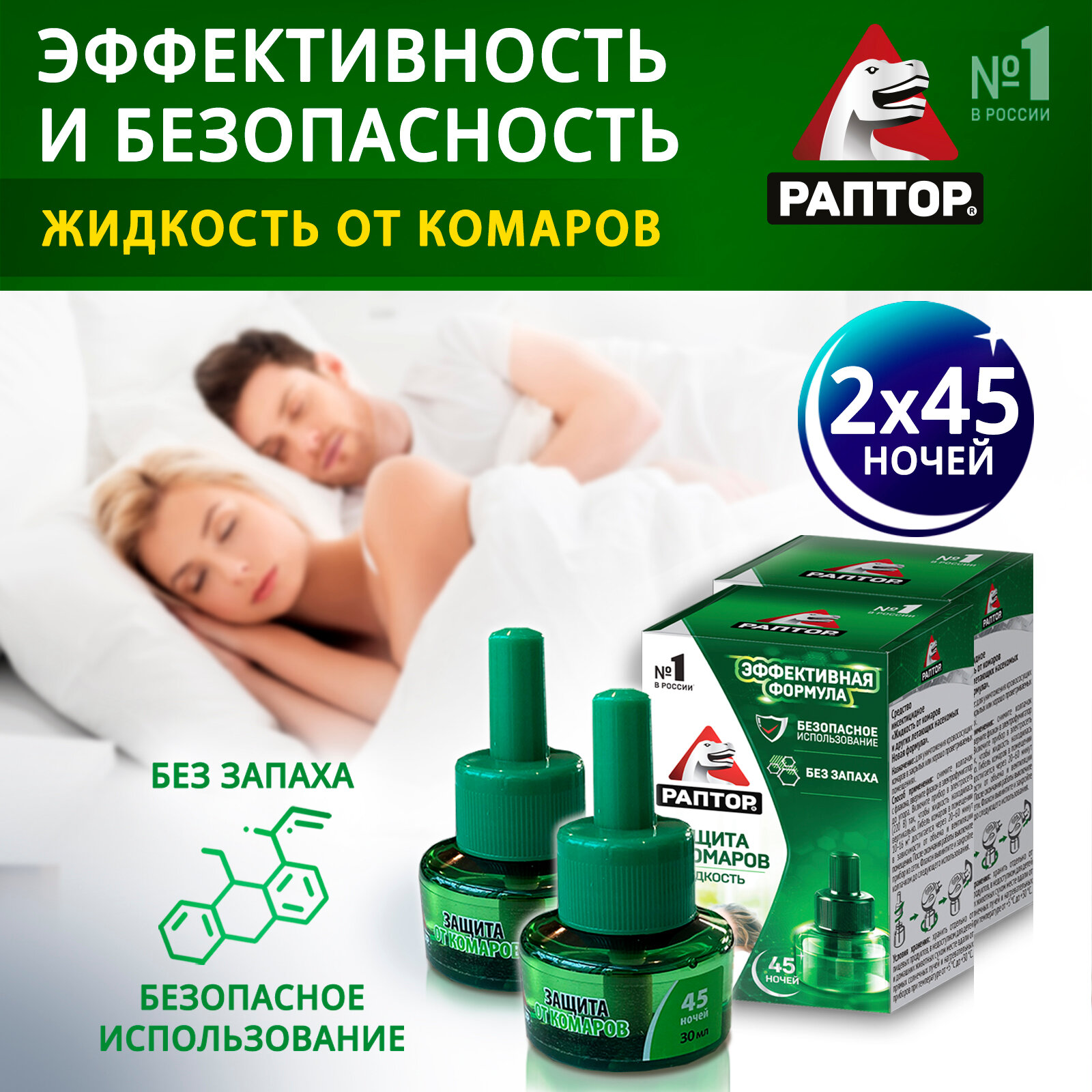 Жидкость от комаров Раптор 45 ночей 2 шт информация: