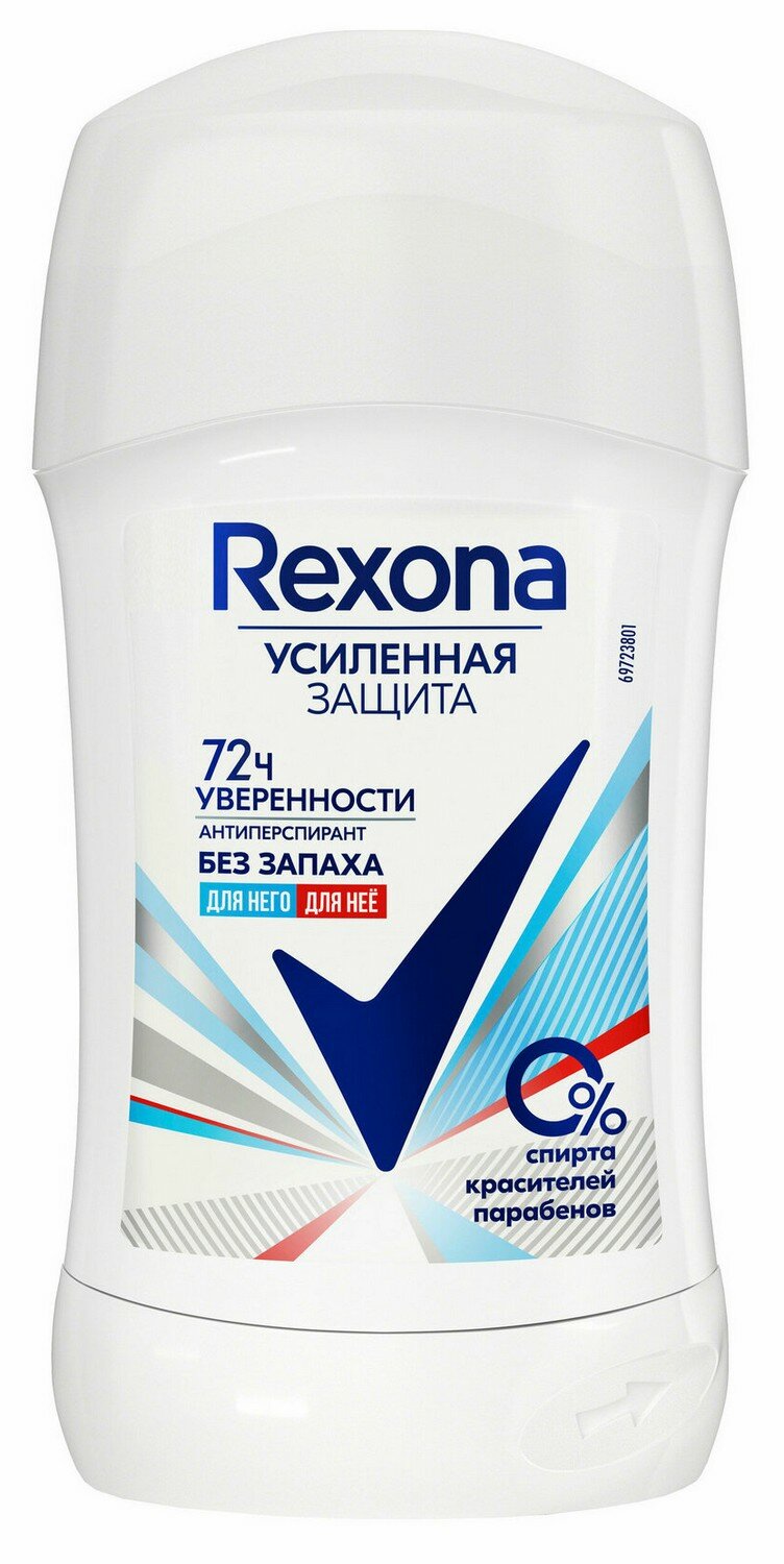 Антиперспирант-дезодорант стик Rexona без запаха, 40 мл 985 ₽
