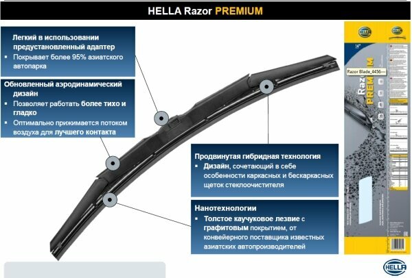 Отзывы на "Щетка стеклоочистителя razor premium 21"" (525мм) 9xw358094-211" Hella 9XW358094211