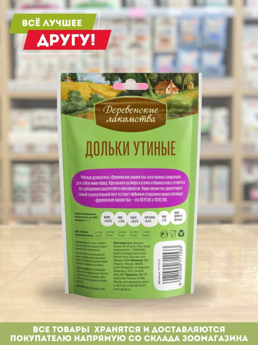 Лакомство деревенские лакомства для мини-пород дольки утиные 55г