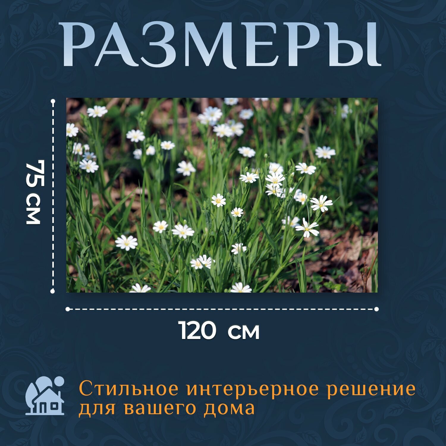 Картина на холсте "Белые цветы, травы, цветок" на подрамнике 120х75 см. для интерьера информация: