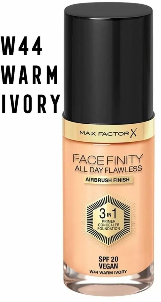 Max Factor Тональная эмульсия Facefinity All Day Flawless 3-in-1, SPF 20, 30 мл, оттенок: 44 Warm Ivory