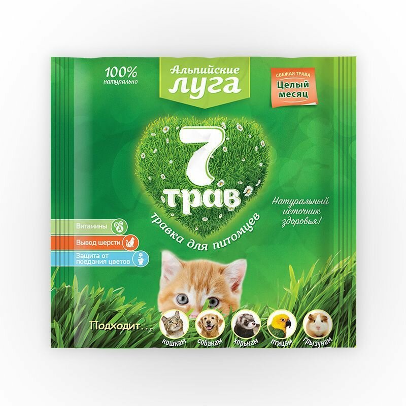 Лакомство для кошек Альпийские луга Травка 7 трав (универсальная), семена, 100 г