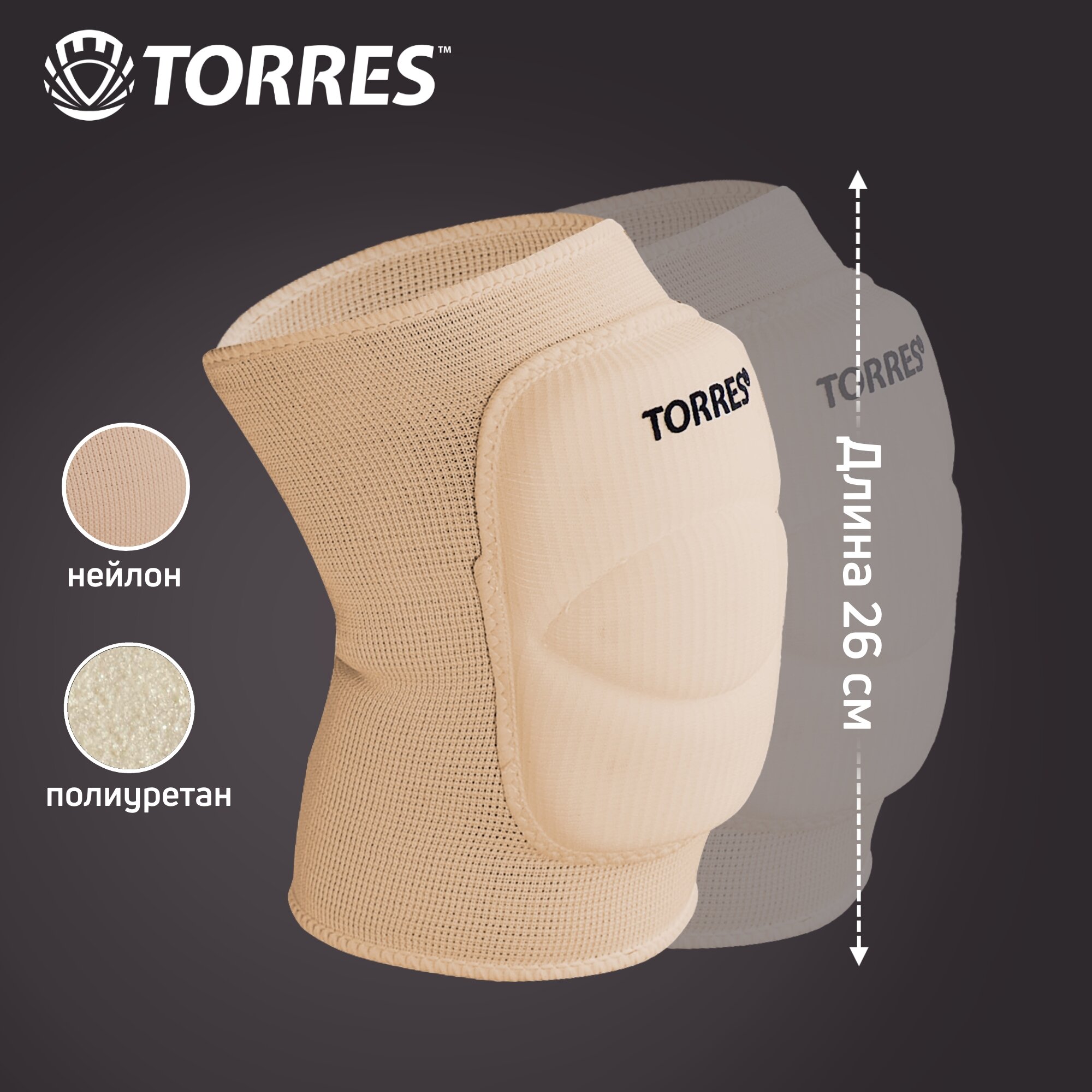 Наколенники спортивные TORRES Classic, бежевый, р.XL, PRL11016XL-04, нейлон, ПУ 1 330 ₽