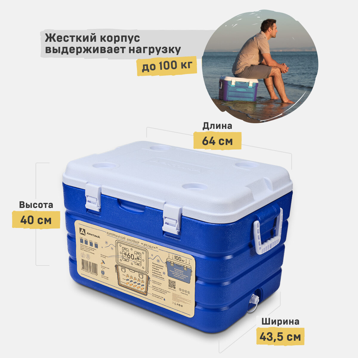 10 цен на Термоконтейнер "Арктика", 60 л, 64 х 43.5 х 40 см, 2 ёмкости для льда, синий