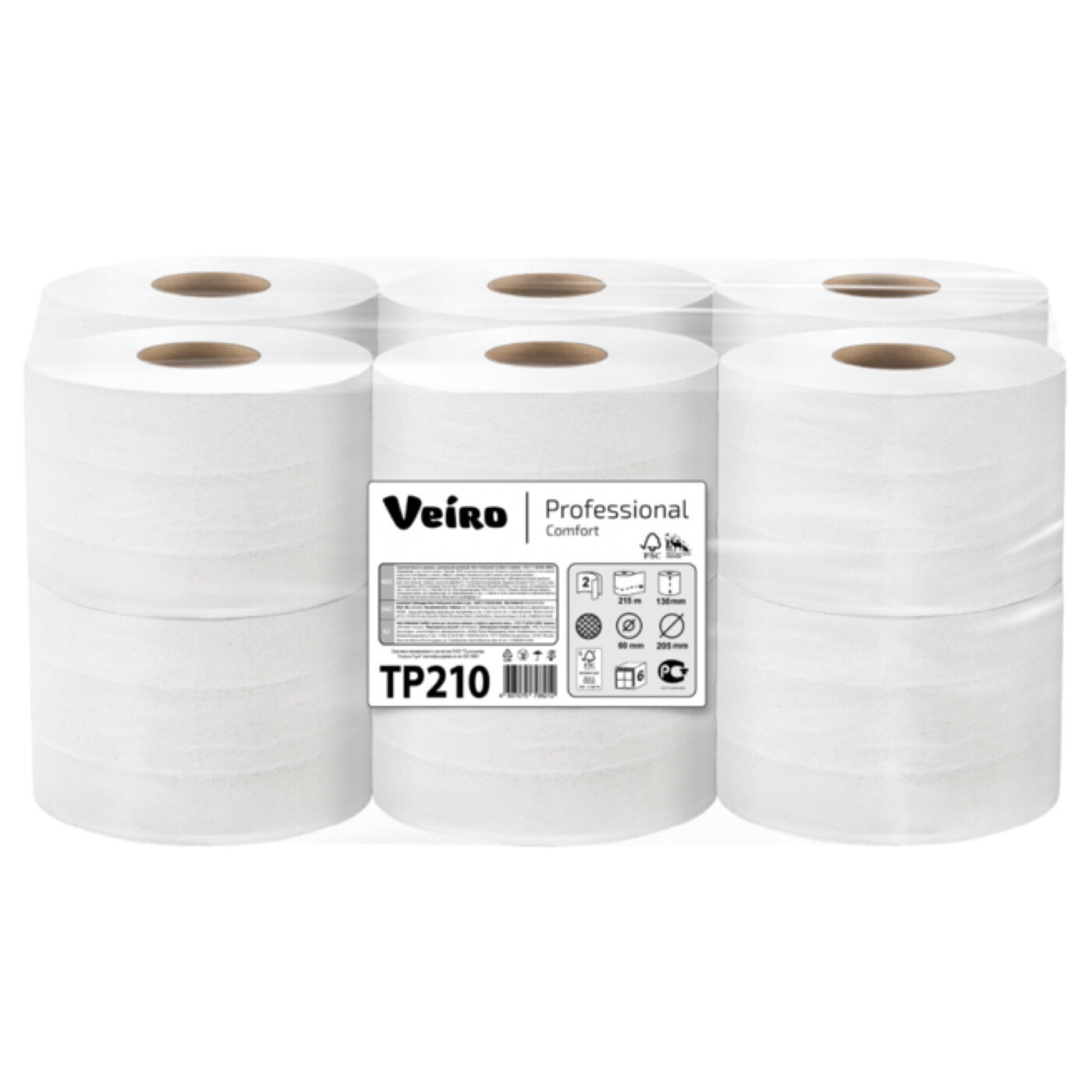 TP210 Туалетная бумага в средних рулонах с центральной вытяжкой Veiro Professional Comfort двухслойная (6 рул х 215 м)