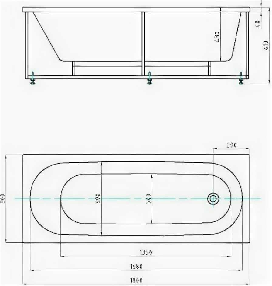 Отзывы на Акриловая ванна Aquatek Оберон 180x80 OBR180-0000003 с фронтальным экраном (слив слева)
