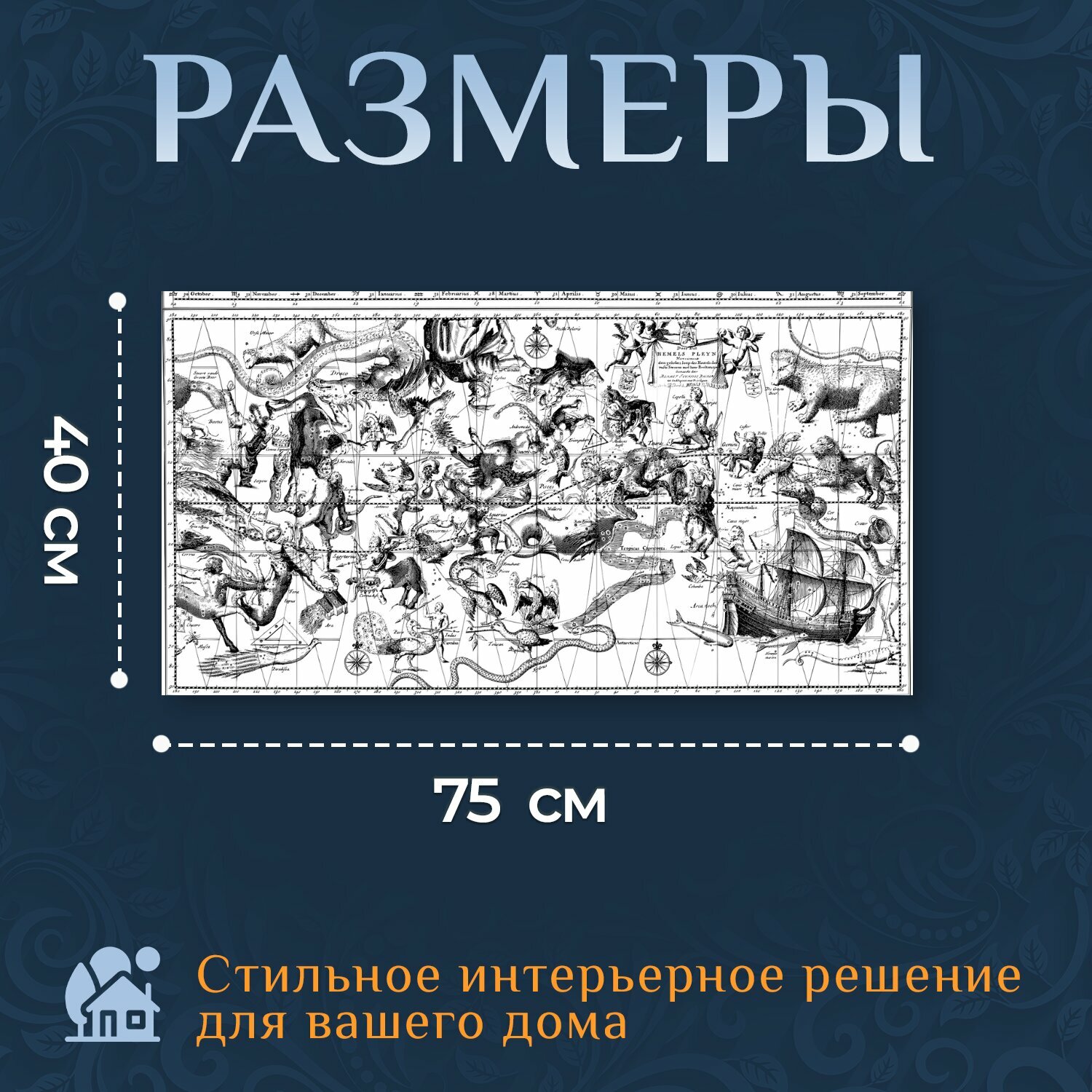 Картина на холсте "Созвездия, небесный, астрономия" на подрамнике 75х40 см. для интерьера информация: